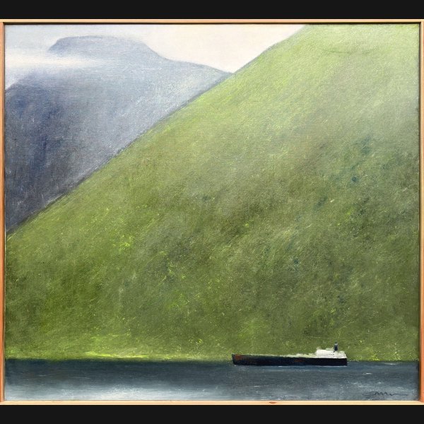 "Skibet ved fjeldet, færøerne. Maleriet er monteret i ny naturramme.