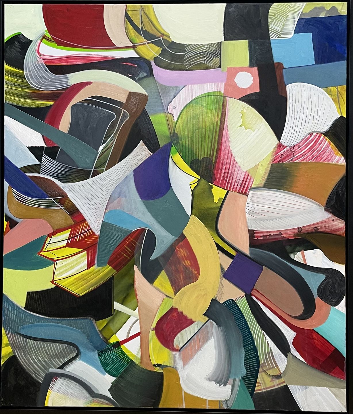 "Komposition" Olie maleri på lærred, monteret i kraftig sort svæveramme.