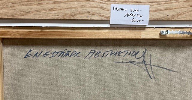 "Enestående abstraktion" flot komposition, som bør ses. Monteret i massiv egetræs svæveramme fra Bogø Design.