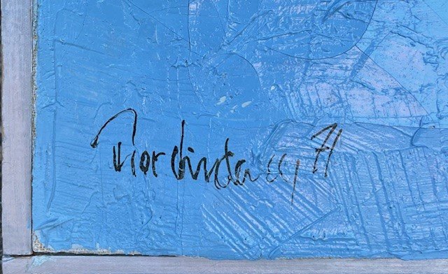 "Komposition" Oliemaleri på lærred i grå naturramme. Maleriet er udstillet på kunstnernes efterårs udstilling på charlottenborg.